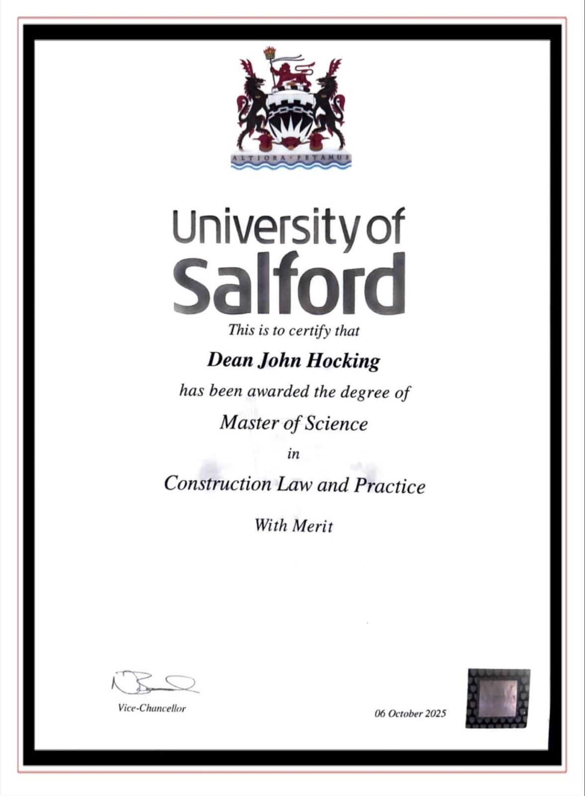 Master of Science in Construction Law and Practice (With Merit).
